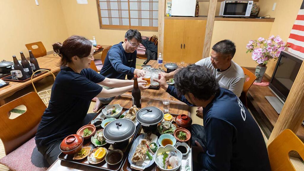 夕食を囲んでの反省会。斉さんや船長からのアドバイスはどれも実践的で、潮の読み方、風と船の流し方、キャストの意図など、自分の釣りの浅さを思い知らされました。