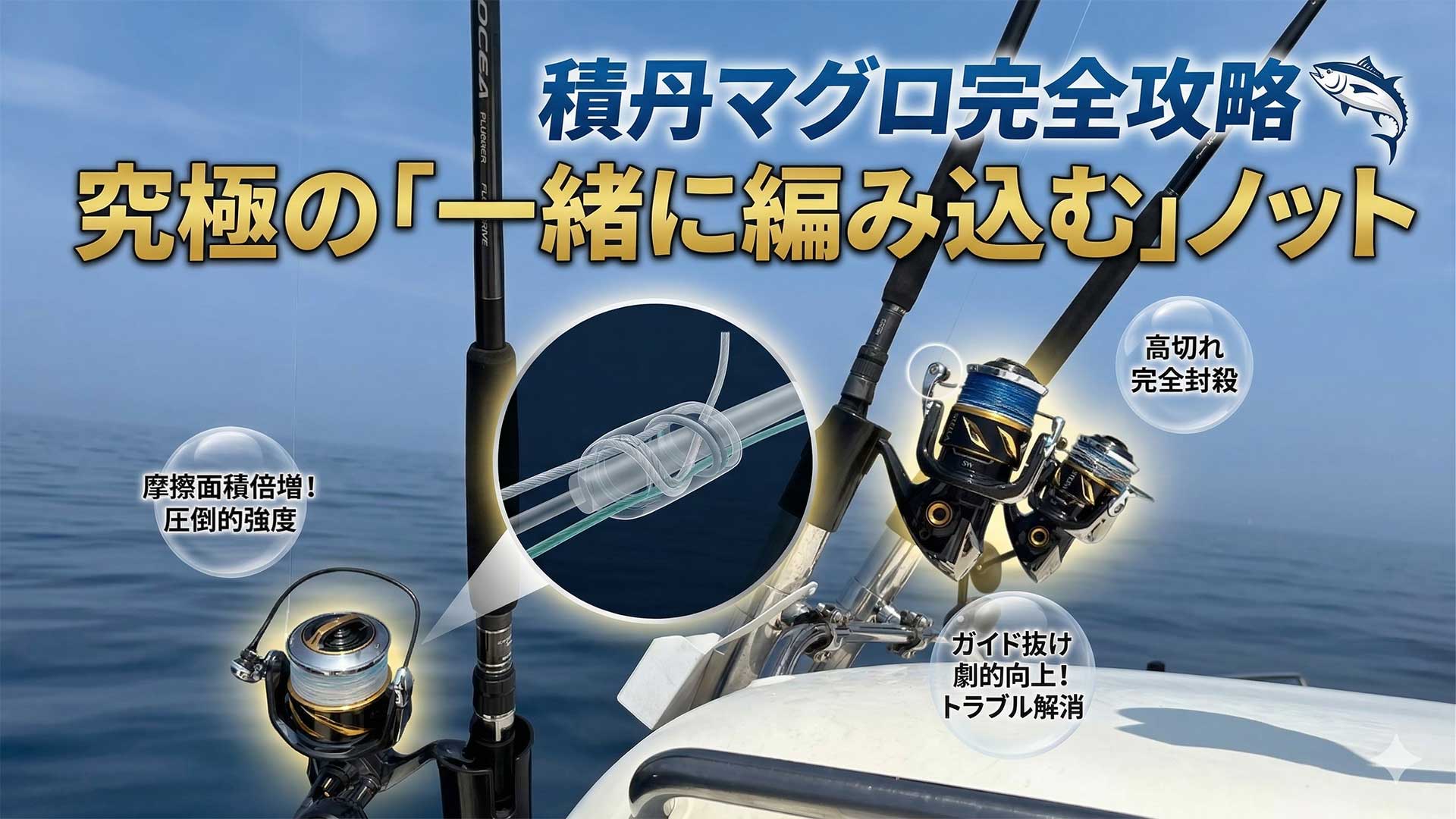本連載の第1回、第2回を通じて、積丹でのマグロキャスティングにおいて最も恐るべきトラブルは「エアノット」であり、それを防ぐための段差埋め(テーパー構造)がいかに重要であるかを徹底的にお伝えしてきました。そして今回、結論として皆様にご提案するのが、それらの課題をノットの構造そのものから解決へと導く「一緒に編み込むスクラムノット」です。なぜなら、この独自の結び方こそが、結び目の強度を極限まで高めると同時に、ガイド抜けを劇的に向上させ、アングラーの命と釣果を脅かすライントラブルを未然に防ぐための最強の物理的アンサーだからです。